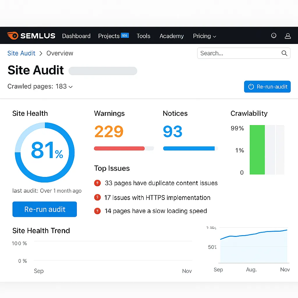 Fixing just 30–40% of the issues SEMrush identifies often results in noticeable ranking improvements.